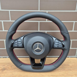 Volant AMG Mercedes sport en cuir perforé avec surpiqûres rouges (Cucitura Rossa)